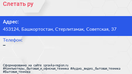 Слетать.ру по адресу 453124, Башкортостан, Стерлитамак, Советская, 37 в дальнейшем Организация, размещена в следующих категориях: