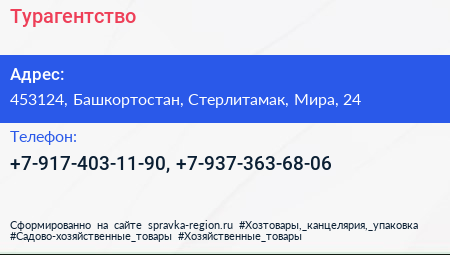 Турагентство по адресу 453124, Башкортостан, Стерлитамак, Мира, 24 в дальнейшем Организация, размещена в следующих категориях: