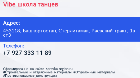 Vibe, школа танцев по адресу 453118, Башкортостан, Стерлитамак, Раевский тракт, 1в ст3 в дальнейшем Организация, размещена в следующих категориях: