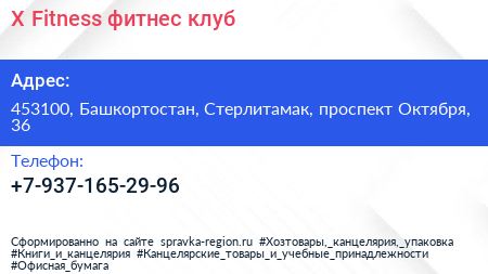 X-Fitness, фитнес-клуб по адресу 453100, Башкортостан, Стерлитамак, проспект Октября, 36 в дальнейшем Организация, размещена в следующих категориях: