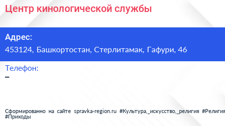 Центр кинологической службы по адресу 453124, Башкортостан, Стерлитамак, Гафури, 46 в дальнейшем Организация, размещена в следующих категориях: