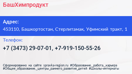 БашХимпродукт по адресу 453110, Башкортостан, Стерлитамак, Уфимский тракт, 1 в дальнейшем Организация, размещена в следующих категориях: