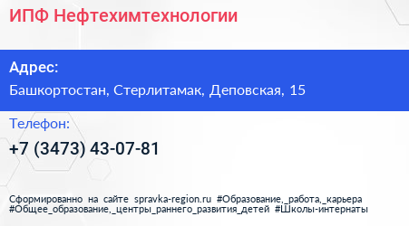 ИПФ Нефтехимтехнологии по адресу Башкортостан, Стерлитамак, Деповская, 15 в дальнейшем Организация, размещена в следующих категориях: