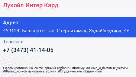 Лукойл-Интер-Кард по адресу 453124, Башкортостан, Стерлитамак, Худайбердина, 46 в дальнейшем Организация, размещена в следующих категориях: