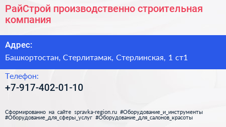 РайСтрой, производственно-строительная компания по адресу Башкортостан, Стерлитамак, Стерлинская, 1 ст1 в дальнейшем Организация, размещена в следующих категориях: