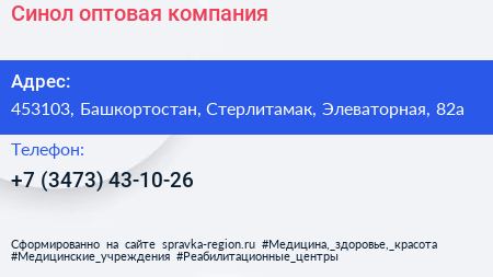 Синол, оптовая компания по адресу 453103, Башкортостан, Стерлитамак, Элеваторная, 82а в дальнейшем Организация, размещена в следующих категориях: