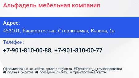 Альфадель, мебельная компания по адресу 453101, Башкортостан, Стерлитамак, Казина, 1а в дальнейшем Организация, размещена в следующих категориях: