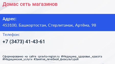 Домас, сеть магазинов по адресу 453100, Башкортостан, Стерлитамак, Артёма, 98 в дальнейшем Организация, размещена в следующих категориях: