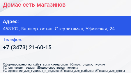 Домас, сеть магазинов по адресу 453102, Башкортостан, Стерлитамак, Уфимская, 24 в дальнейшем Организация, размещена в следующих категориях: