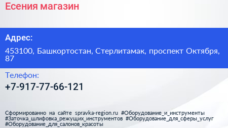 Есения, магазин по адресу 453100, Башкортостан, Стерлитамак, проспект Октября, 87 в дальнейшем Организация, размещена в следующих категориях: