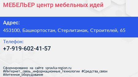 МЕБЕЛЬЕР, центр мебельных идей по адресу 453100, Башкортостан, Стерлитамак, Строителей, 65 в дальнейшем Организация, размещена в следующих категориях: