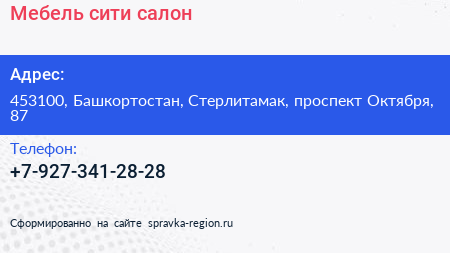 Мебель сити, салон по адресу 453100, Башкортостан, Стерлитамак, проспект Октября, 87 в дальнейшем Организация, размещена в следующих категориях: