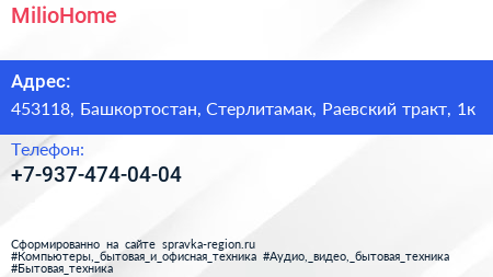 MilioHome по адресу 453118, Башкортостан, Стерлитамак, Раевский тракт, 1к в дальнейшем Организация, размещена в следующих категориях: