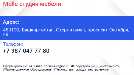 Molle, студия мебели по адресу 453100, Башкортостан, Стерлитамак, проспект Октября, 48 в дальнейшем Организация, размещена в следующих категориях: