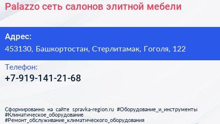 Palazzo, сеть салонов элитной мебели по адресу 453130, Башкортостан, Стерлитамак, Гоголя, 122 в дальнейшем Организация, размещена в следующих категориях: