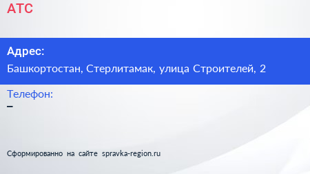 АТС по адресу Башкортостан, Стерлитамак, улица Строителей, 2 в дальнейшем Организация, размещена в следующих категориях: