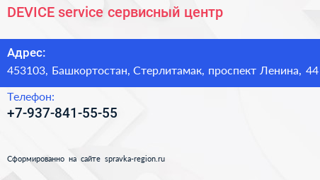DEVICE-service, сервисный центр по адресу 453103, Башкортостан, Стерлитамак, проспект Ленина, 44 в дальнейшем Организация, размещена в следующих категориях: