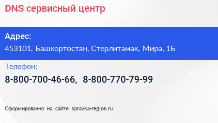 DNS, сервисный центр по адресу 453101, Башкортостан, Стерлитамак, Мира, 1Б в дальнейшем Организация, размещена в следующих категориях: