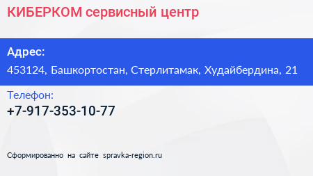 КИБЕРКОМ, сервисный центр по адресу 453124, Башкортостан, Стерлитамак, Худайбердина, 21 в дальнейшем Организация, размещена в следующих категориях: