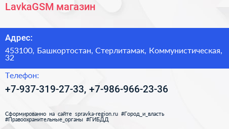 LavkaGSM, магазин по адресу 453100, Башкортостан, Стерлитамак, Коммунистическая, 32 в дальнейшем Организация, размещена в следующих категориях: