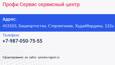 Профи-Сервис, сервисный центр по адресу 453103, Башкортостан, Стерлитамак, Худайбердина, 122а в дальнейшем Организация, размещена в следующих категориях: