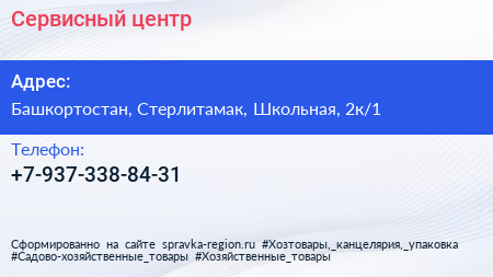Сервисный центр по адресу Башкортостан, Стерлитамак, Школьная, 2к/1 в дальнейшем Организация, размещена в следующих категориях: