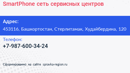 SmartPhone, сеть сервисных центров по адресу 453116, Башкортостан, Стерлитамак, Худайбердина, 120 в дальнейшем Организация, размещена в следующих категориях: