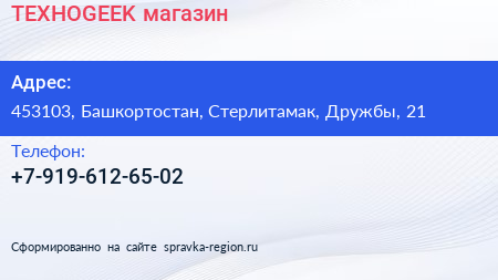 ТЕХНОGEEK, магазин по адресу 453103, Башкортостан, Стерлитамак, Дружбы, 21 в дальнейшем Организация, размещена в следующих категориях: