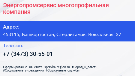 Энергопромсервис, многопрофильная компания по адресу 453115, Башкортостан, Стерлитамак, Вокзальная, 37 в дальнейшем Организация, размещена в следующих категориях: