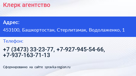 Клерк, агентство по адресу 453100, Башкортостан, Стерлитамак, Водолаженко, 1 в дальнейшем Организация, размещена в следующих категориях: