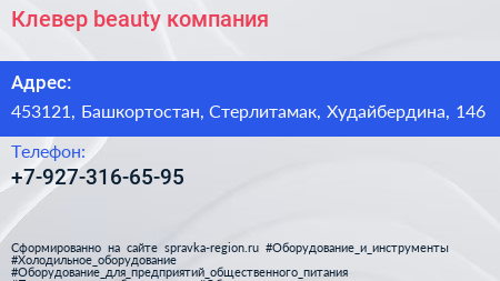 Клевер beauty, компания по адресу 453121, Башкортостан, Стерлитамак, Худайбердина, 146 в дальнейшем Организация, размещена в следующих категориях: