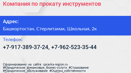 Компания по прокату инструментов по адресу Башкортостан, Стерлитамак, Школьная, 2к в дальнейшем Организация, размещена в следующих категориях: