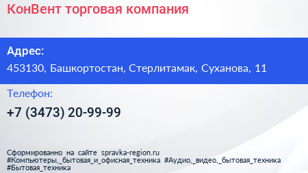 КонВент, торговая компания по адресу 453130, Башкортостан, Стерлитамак, Суханова, 11 в дальнейшем Организация, размещена в следующих категориях: