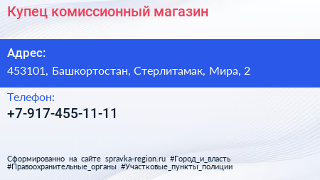 Купец, комиссионный магазин по адресу 453101, Башкортостан, Стерлитамак, Мира, 2 в дальнейшем Организация, размещена в следующих категориях: