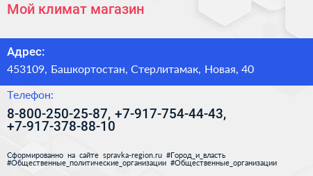 Мой климат, магазин по адресу 453109, Башкортостан, Стерлитамак, Новая, 40 в дальнейшем Организация, размещена в следующих категориях: