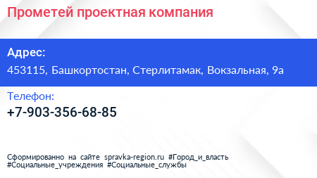 Прометей, проектная компания по адресу 453115, Башкортостан, Стерлитамак, Вокзальная, 9а в дальнейшем Организация, размещена в следующих категориях: