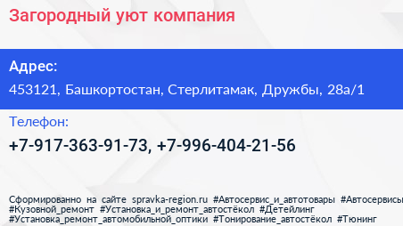 Загородный уют, компания по адресу 453121, Башкортостан, Стерлитамак, Дружбы, 28а/1 в дальнейшем Организация, размещена в следующих категориях: