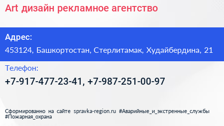 Art дизайн, рекламное агентство по адресу 453124, Башкортостан, Стерлитамак, Худайбердина, 21 в дальнейшем Организация, размещена в следующих категориях:
