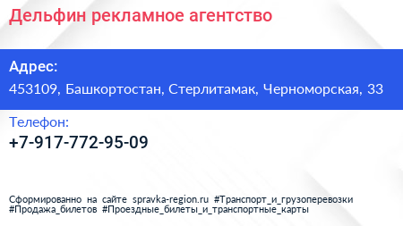 Дельфин, рекламное агентство по адресу 453109, Башкортостан, Стерлитамак, Черноморская, 33 в дальнейшем Организация, размещена в следующих категориях: