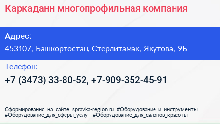 Каркаданн, многопрофильная компания по адресу 453107, Башкортостан, Стерлитамак, Якутова, 9Б в дальнейшем Организация, размещена в следующих категориях: