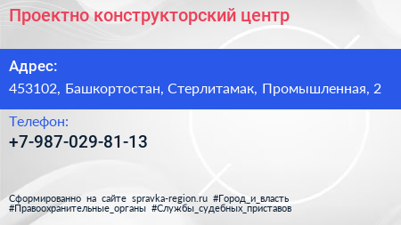 Проектно-конструкторский центр по адресу 453102, Башкортостан, Стерлитамак, Промышленная, 2 в дальнейшем Организация, размещена в следующих категориях:
