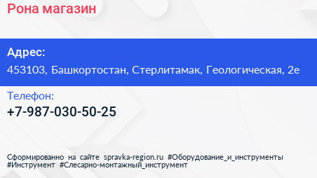 Рона, магазин по адресу 453103, Башкортостан, Стерлитамак, Геологическая, 2е в дальнейшем Организация, размещена в следующих категориях: