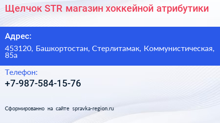 Щелчок STR, магазин хоккейной атрибутики по адресу 453120, Башкортостан, Стерлитамак, Коммунистическая, 85а в дальнейшем Организация, размещена в следующих категориях: