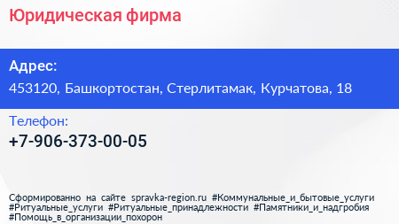 Юридическая фирма по адресу 453120, Башкортостан, Стерлитамак, Курчатова, 18 в дальнейшем Организация, размещена в следующих категориях: