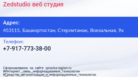 Zedstudio, веб-студия по адресу 453115, Башкортостан, Стерлитамак, Вокзальная, 9а в дальнейшем Организация, размещена в следующих категориях: