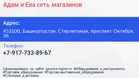 Адам и Ева, сеть магазинов по адресу 453100, Башкортостан, Стерлитамак, проспект Октября, 36 в дальнейшем Организация, размещена в следующих категориях:
