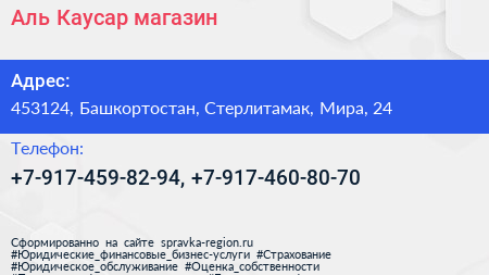 Аль Каусар, магазин по адресу 453124, Башкортостан, Стерлитамак, Мира, 24 в дальнейшем Организация, размещена в следующих категориях: