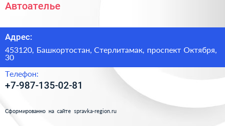 Автоателье по адресу 453120, Башкортостан, Стерлитамак, проспект Октября, 30 в дальнейшем Организация, размещена в следующих категориях: