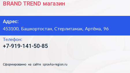 BRAND & TREND, магазин по адресу 453100, Башкортостан, Стерлитамак, Артёма, 96 в дальнейшем Организация, размещена в следующих категориях: