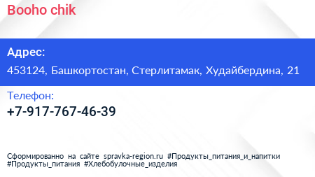 Booho chik по адресу 453124, Башкортостан, Стерлитамак, Худайбердина, 21 в дальнейшем Организация, размещена в следующих категориях: